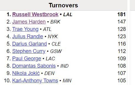 360直播01月04日讯 ,威少在湖人与森林狼一战中出现9次失误,让他再次成为球迷“开会”的对象。赛季至今,威少大部分时间保持着联盟失误王这个尴尬的头衔,场均8.3助攻4.8失误的助攻失误比,也令湖人球迷感到扎心。然而本赛季,场均失误次数最多的,不是威少,而是他昔日的三弟——哈登!