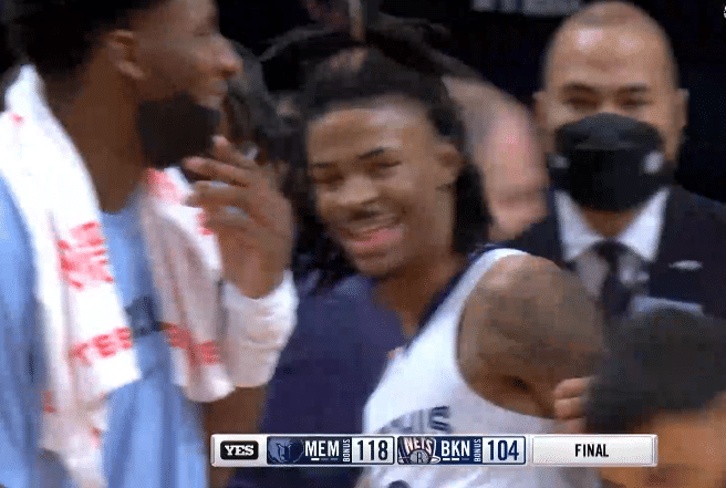 360直播01月04日讯 ,NBA常规赛灰熊118-104大胜篮网从而喜提五连胜,22岁莫兰特全场出战35分钟22投14中、三分4中2拿到36分8助攻6篮板,正负值+24,连续4场30+带队保持连胜,成灰熊队史第一位达成如此纪录的球员。