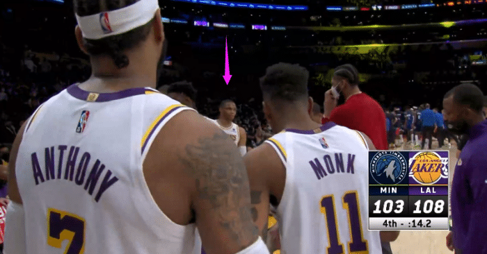 360直播01月03日讯 ,湖人主场108-103险胜森林狼,詹姆斯苦战39分钟拿到26分7篮板5助攻3抢断1盖帽,累得双手扶着膝盖直喘粗气,连续7场30+纪录被终结;湖人赢球十分惊险,关键时刻威少出现致命失误——终场前14.2秒,威少边线发球直接五秒违例。