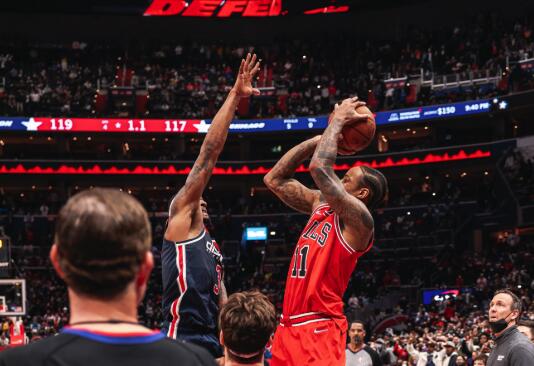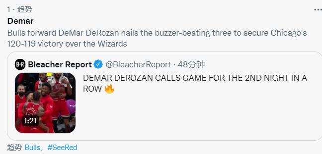 360直播01月02日讯 NBA常规赛,公牛120-119逆转击败奇才!德罗赞此役再度完成了高难度的压哨三分绝杀,连续两个夜晚绝杀, 德罗赞成为历史首人。赛后,德罗赞的名字登上全美热搜第一位!包括詹姆斯在内的球员,媒体和球迷,纷纷盛赞德罗赞。不知道看到这一幕,湖人作何感想?