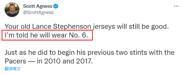 360直播01月02日讯 ,师弟重返印第安纳步行者,据TheAthletic记者ShamsCharania报道,步行者将使用10天困难特例合同,签下后卫兰斯-史蒂芬森;职业生涯第三次为步行者效力,据美记者透露,史蒂芬森将会身穿步行者6号球衣。
