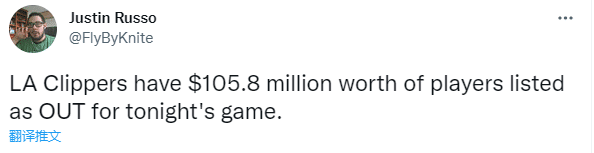 篮网将在今天对阵快船,杜兰特和哈登带队出战,有望赢球夺回东部第一;目前篮网23胜10负排在东部第二,仅仅因胜负关系落后公牛;快船队伤病满营,小卡、乔治都无法出战,巴图姆、祖巴茨以及肯纳德也不能上场,泰伦-卢因感染新冠被隔离,美记者表示快船有1.058亿美元的阵容缺席与篮网的比赛。