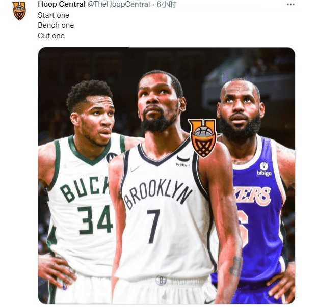 360直播01月01日讯 组建起一支拥有豪华明星阵容的队伍,可能是每一位球队老板和球迷都希望看到的事情。不过受制于薪资空间和联盟限令的影响,这样的情况几乎不可能会实现,这样的阵容也只能是在全明星赛拥有一天时间的限定体验。不过尽管没有办法在现实中实现,但是这完全不能阻挡人们对于美好事情的幻想。这不,在2022年的第一天,美国媒体便HoopCentral便在推特上发出一个讨论话题,这家媒体在推特中写道:“首发一个,替补一个,裁掉一个。”配图则是将字母哥、詹姆斯和杜兰特P在一起,不得不说美媒的脑回路真是非常清奇,这样的问题抛出来自然会迎来无数球迷的跟帖讨论,那么下面不妨让我们也一起来大胆假设一下,到底该如何进行选择吧!