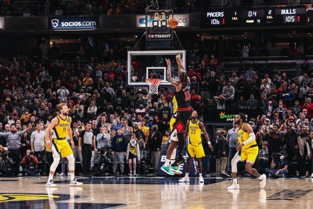 360直播01月01日讯 ,公牛108-106险胜步行者,德罗赞得到28分6助攻,最后时刻,他的一记压哨三分绝杀,帮助公牛以两分优势险胜对手。前三节,德罗赞16中4,只得到15分,但最后一节,他又爆发了,单节8中4,得到13分,包括这记极限三分绝杀!赛后,他第一时间冲上全美热搜!