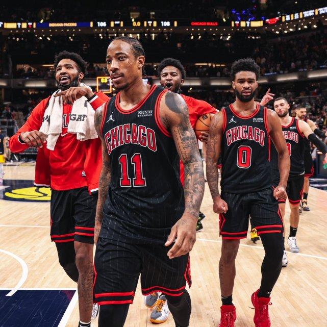 公牛官方社媒嗨翻了!连续发了五遍德罗赞的名字,为他全明星拉票!此外还晒出了德罗赞绝杀的视频和照片,庆祝这一经典结局。最后时刻,面对步行者的防守尖兵克雷格,德罗赞沉稳自如地连续运球后,使出了一招金鸡独立式的三分跑投,灯亮球进!好一个压哨三分!公牛球员们疯狂地冲向德罗赞,拥抱庆祝,德罗赞一路后退,最后躺地庆祝!