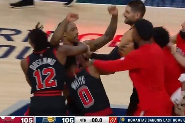 360直播01月01日讯 ,NBA诞生了一记非常不可思议的绝杀。在公牛做客挑战步行者的比赛中,公牛球员德罗赞在最后时刻球队105-106落后的情况下,将时间压到最后,并上演了压哨骑马射箭三分绝杀!这球像极了当年科比绝杀热火的一幕,德罗赞本赛季的状态实在令人称奇!