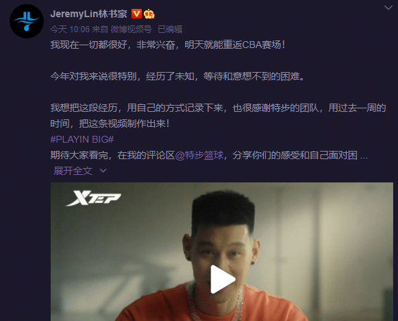 恢复身体、养伤等等,让林书豪都无缘在第一阶段登场,他在录制的视频中还谈到过本赛季的目标,那就是要冲击本赛季CBA总冠军,自己在北京首钢效力第一年的时候,带队打进了季后赛四强,而经历了发展联盟和确诊等经历之后,林书豪终于归来。