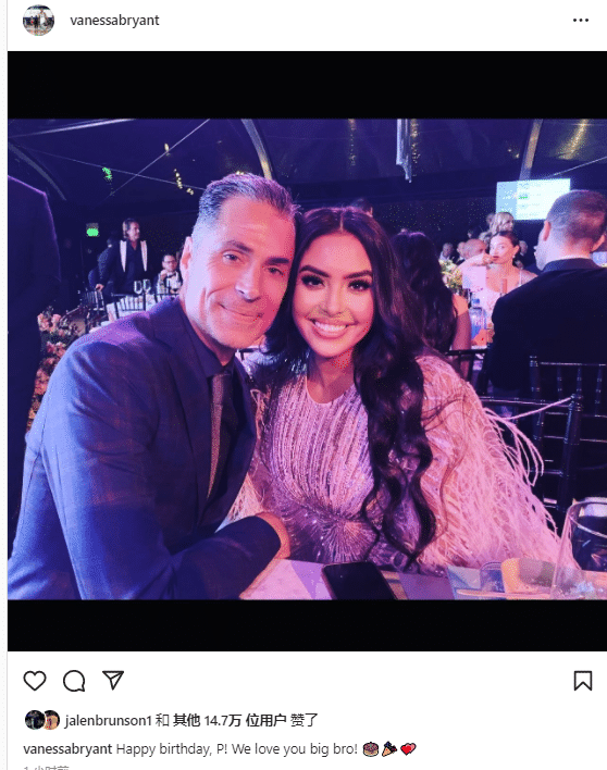 科比遗孀瓦妮莎也在社交媒体上祝贺佩总,瓦妮莎晒出两人合影,配文写道:生日快乐,我们都爱你,大哥哥!