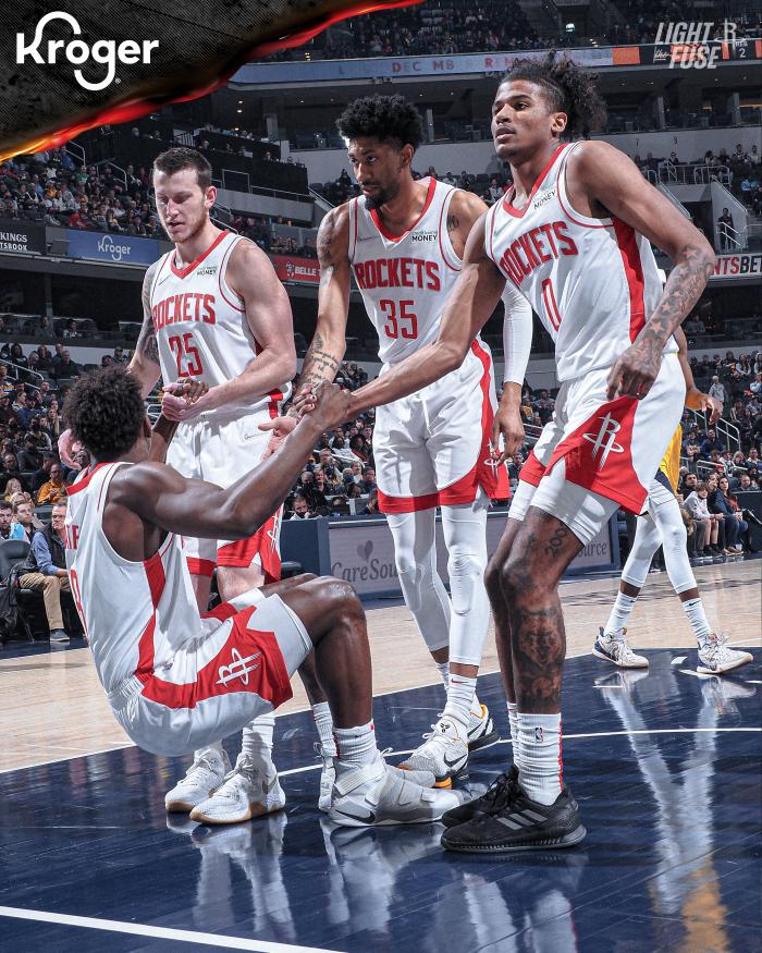 下半场,火箭第三节火力全开,杰伦-格林轰进三分吹响进攻号角,持球突破杀到禁区上篮,外线三分继续扔继续进从而打停步行者;格林在有限的上场时间内贡献8分,火箭单节36-28扭转局面。
