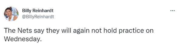 360直播12月22日讯 ,据篮网记者Billy Reinhardt报道,篮网将不会在周四举行训练;自从惨遭疫情侵袭之后,篮网已经连续三天取消训练,而且篮网已经有两场比赛被延期;篮网这样做也是无奈之举,全队21人大名单,仅仅只有8人健康,仍有10名球员被隔离太惨了。