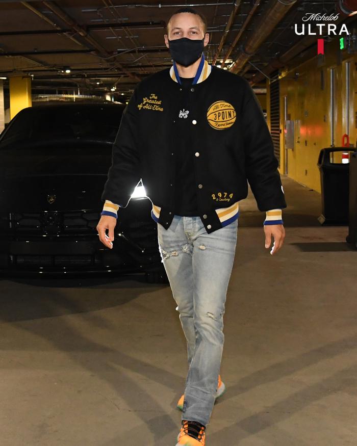 上一场勇士客场不敌猛龙,库里、格林等多名球员集体轮休并且没有随队前场多伦多;如今主场对阵国王,库里确定出战;赛前库里身穿特制的纪念版夹克,外套上绣着“历史最佳”“2974”等字样;结束客场之旅,NBA历史三分王正式亮相大通中心。