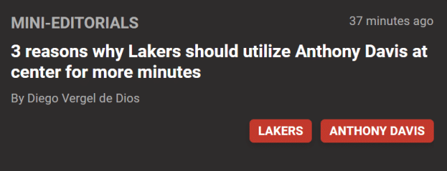 浓眉在防守端面对挡拆的无限换防能力,是被低估的。让浓眉打中锋,可以让湖人在防守端更少被针对,球队可以提升换防的效果。