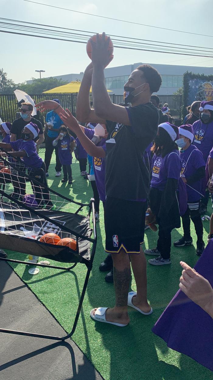 360直播12月05日讯 输掉洛城德比之后,湖人有三天的调整时间,有充足的时间备战下一场;训练之余,今天湖人举办户外活动,浓眉、安东尼等球员都穿着拖鞋参加活动,瓜哥、艾灵顿等人和小朋友比投篮以及合影。