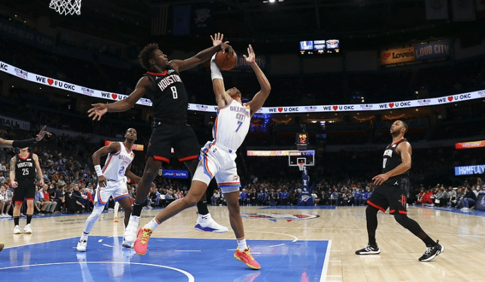 360直播12月02日讯 今天NBA常规赛结束了一场焦点战,火箭依靠着末节的爆发,在客场大逆转击败雷霆,豪取4连胜。本赛季火箭和雷霆交手4次,最终的结果是3胜1负,火箭三杀雷霆,占据优势。这场比赛对于火箭来说,大逆转取得胜利是非常不容易的,因为他们除了比分上一度落后之外,还有两大核心伤退,分别是伍德和小波特。其中小波特是因为左大腿淤伤,伍德是疑似崴脚,之后一度重新回到球场上,但坚持了几分钟之后,伍德重新回到了更衣室,正式伤退。