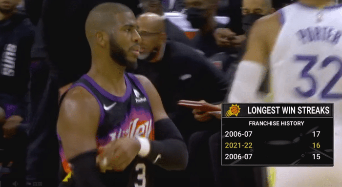 在赢下本场比赛后,太阳豪取17连胜,这也是追平了队史纪录,在让了布布克的情况下,勇士依然是输球了,本场比赛库里21投4中疯狂打铁,另外勇士全队出现了22次失误,保罗15分11助5抢断,表现太稳了。
