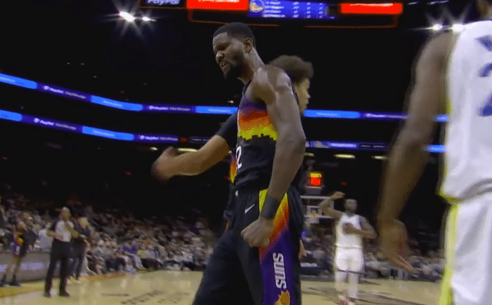 下半场比赛开始后,卢尼打到克劳德的脸部领到一级恶意犯规,但是克劳德出现了两罚不中,艾顿跳投命中,打了4分钟时间,勇士就得到了这3分,太阳取得了5分的领先,格林连续得分,卡梅隆-约翰逊三分命中,布里奇斯抢断暴扣得手,太阳将领先优势扩大到了9分,维金斯打成2+1回应,普尔延续了上半场的出色发挥,他连续得分,随后防守端上演精彩盖帽,反击回来助攻佩顿二世暴扣得手,两队再次进入拉锯战,最后时刻库里重新回到场上,他命中一记三分球后再次下场,三节打完太阳领先2分。