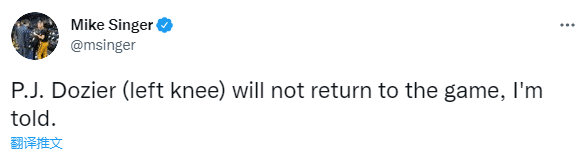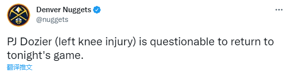 之后掘金官方宣布初步伤情,多齐尔左膝受伤被列为出战成疑,接下来有可能打也可能不打,但愿多齐尔膝盖伤势不严重,随后确定因伤退赛。