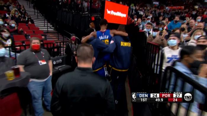 360直播11月24日讯 ,在掘金和开拓者比赛中,第一节快结束时,掘金替补PJ-多齐尔受伤离场,左腿无法用力,被两人抬离现场,并且返回更衣室;掘金官方先是他列为出战成疑,之后宣布多齐尔本场比赛不会回归。