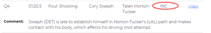 裁判报告指出,第四节1分20秒,约瑟夫防守时没有站稳,他影响了霍顿-塔克投篮,这应该吹罚约瑟夫阻挡犯规;当时塔克把球打进,伸手要犯规遭裁判无视,若当时裁判吹罚,湖人很可能领先到3分;最后2分钟只有这一次漏判,其他吹罚全部正确,湖人吃亏仍逆转赢球。