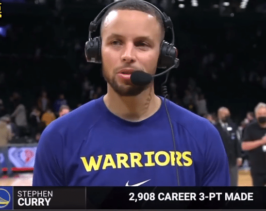 库里职业生涯三分突破2900大关,累计是2908记三分球。