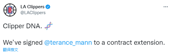 360直播10月13日讯 ,洛杉矶快船正式续约特伦斯-曼恩,24岁曼恩和快船提前续约2年2200万美元新合同,未来四年继续留在快船;快船新星曾当小卡替身,季后赛狂砍39分助球队杀进西决。