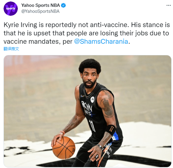 360直播10月13日讯 ,篮网队已经宣布禁赛欧文随队参加训练和比赛,直到他履行纽约的防疫规定,之后名记shams继续报道欧文的情况,凯里-欧文并不反对疫苗,他的立场是,他对人们因没有接种疫苗而失业感到不安,这也是他拒绝接种的重要原因。