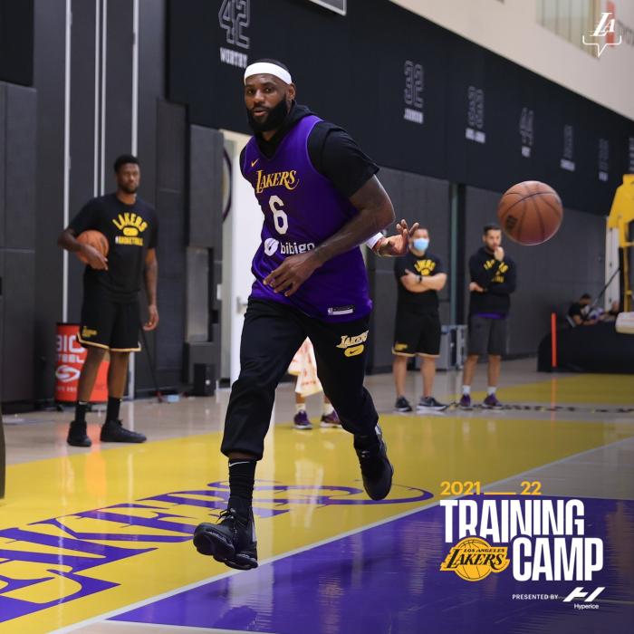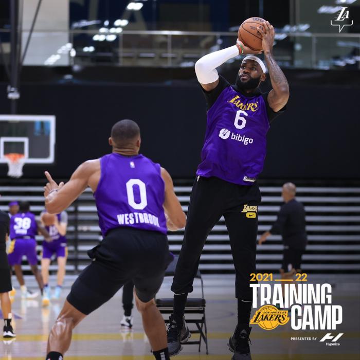 360直播10月01日讯 ,湖人训练营第二天,洛杉矶湖人队晒出众球员的训练照,6号发带詹回来了;36岁詹姆斯戴着发带且身披6号战袍参加训练,训练中湖人队笑声不断,队内氛围特别好,但训练强度很大,詹姆斯把嗓子喊哑了。
