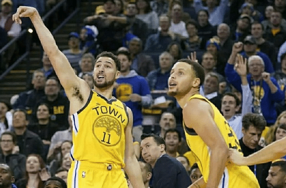 如今克莱回归和克莱拍摄定妆照,其中水花兄弟终于合体,他们一起拍摄的照片被认为是最佳瞬间。库里和克莱同时出现在镜头面前,库里做出扣篮动作,克莱则是上篮的动作,两人同框。