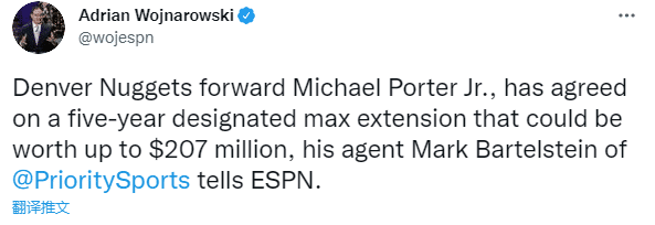 360直播9月28日讯 ,据ESPN名记沃纳罗斯基报道,小波特已经同意和掘金续签最高5年2.07亿美元的顶薪大合同,不过前提是小波特新赛季要入选最佳阵容,否则他的合同将变成5年1.72亿美元,成为东契奇、特雷-杨和雷霆球员亚历山大之后,08届新秀中第四位续签大合同的球员。