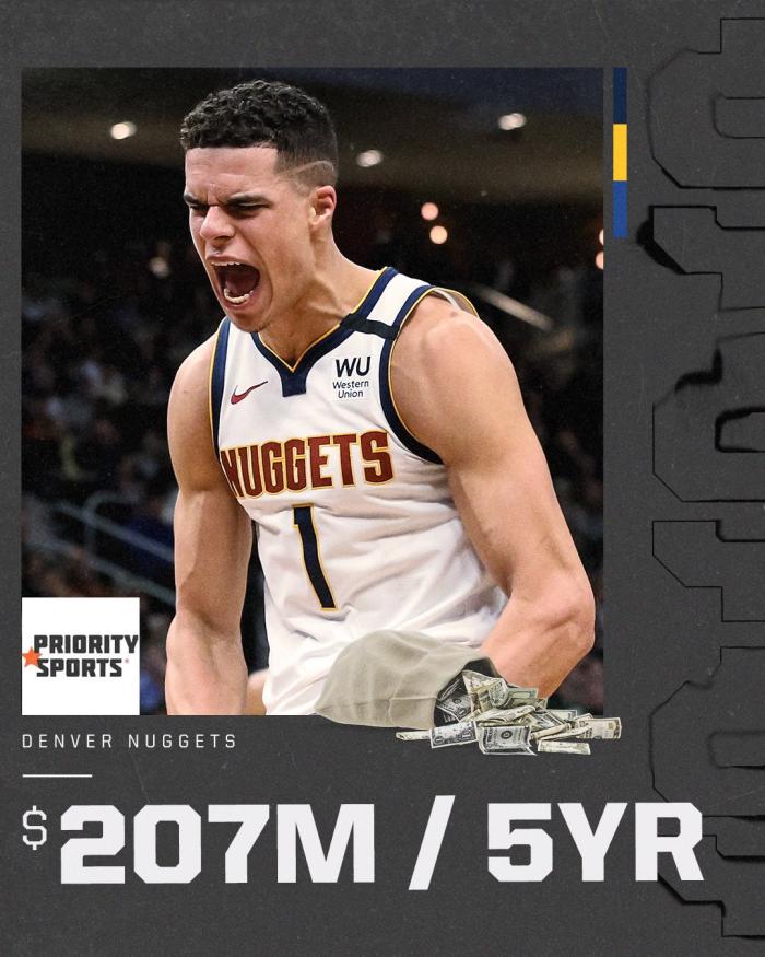 根据记者BobbyMarks报道,掘金也将成为目前第四支在2022-23赛季拥有3位顶薪球员的球队,其他三支球队分别为篮网(杜兰特、哈登和欧文)、勇士(库里、汤普森和维金斯)和湖人(詹姆斯、浓眉和威少)。