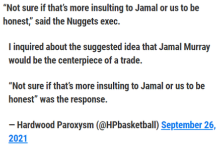 “不确定掘金要拿穆雷交易西蒙斯,是在侮辱穆雷还是侮辱掘金。”