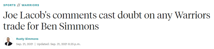 76人想要高价悬了,勇士老板质疑后被罚款,西蒙斯现在不如穆雷?