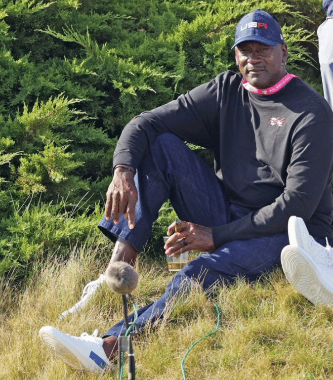 高尔夫重磅赛事莱德杯拉开帷幕,作为高尔夫的爱好者,乔丹不会缺席的,他来到现场喝啤酒观看比赛。坐在草地上的乔丹,拿着装有啤酒的杯子,乔丹红彤彤的脸满是享受生活,看起来确实太惬意了,这就是58岁的乔丹,功成名就的他,已是亿万富翁,属于社会里面的名流。