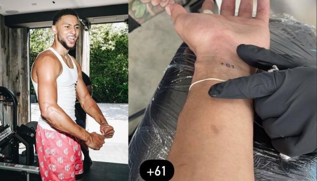 360直播9月09日讯 ,NBA球星本-西蒙斯更新社媒,晒出了自己左手腕上的新纹身。纹身应该没有彻底完工,但已经显示出“+61”的号码。这是澳大利亚的国家区号,西蒙斯出生在澳大利亚墨尔本,这个纹身应该是向他的祖国致敬。