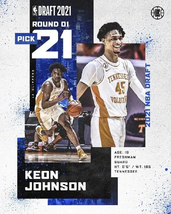 今年NBA选秀大会上,快船用自己的25号签和一个未来次轮签,从尼克斯换来21号签,随即选择了基恩-约翰逊;