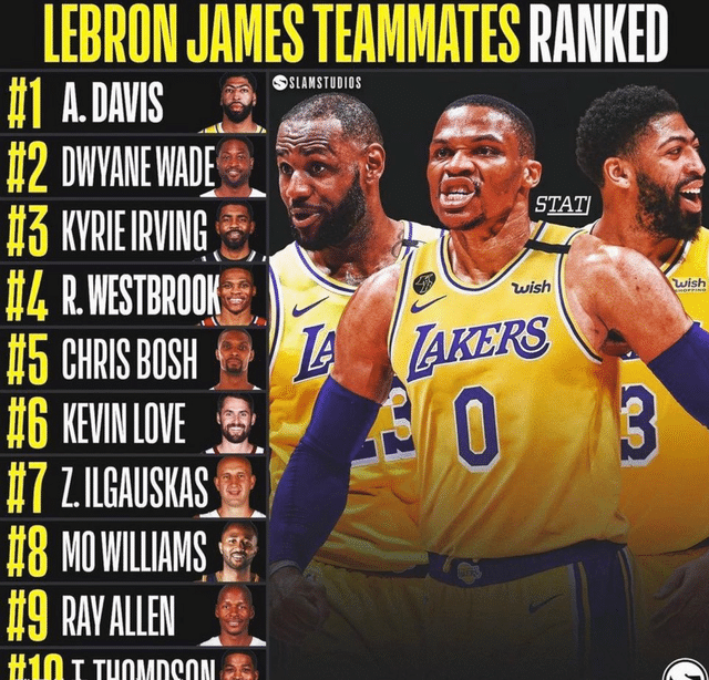 360直播讯威斯布鲁克加盟湖人后,有美国媒体排出詹姆斯职业生涯十大队友。戴维斯排名第一,威斯布鲁克排名第四。接下来,文章带您看看具体的情况。
