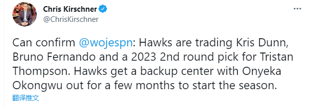 360直播讯 北京时间7月31日,NBA又一笔交易达成,据ESPN名记沃纳罗斯基报道,凯尔特人把特里斯坦-汤普森交易到老鹰,得到克里斯-邓恩、布鲁诺-费尔南多和一个2023年次轮选秀权;绿军1换3送走TT,这是他们休赛期第二笔交易,赛季结束是绿军把沃克交易到雷霆。