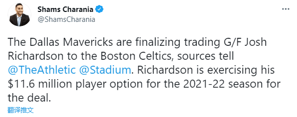 360直播讯 北京时间7月31日,NBA又完成一笔交易达成,达拉斯独行侠把约什-理查德森交易到凯尔特人,理查德森已经执行了下赛季1160万美元的球员选项;独行侠1换0图什么?为引援做准备,很明显库班想要为东契奇找帮手,洛瑞便是他们的目标之一。