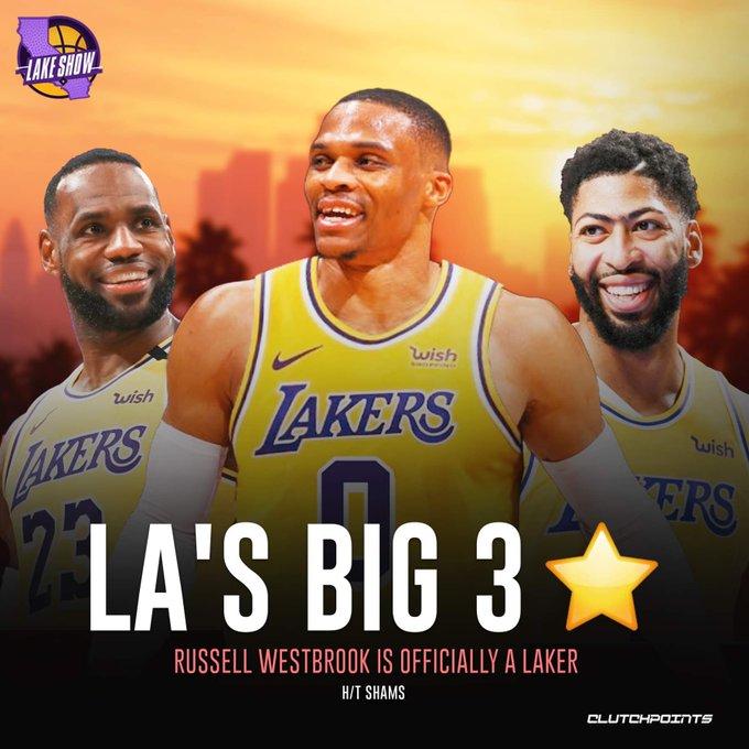 360直播讯 北京时间7月20日,今日早些时候NBA重磅交易达成,湖人用库兹马、哈雷尔、波普和今年22号签换来了威少和两个次轮签,湖人组成了三巨头阵容!