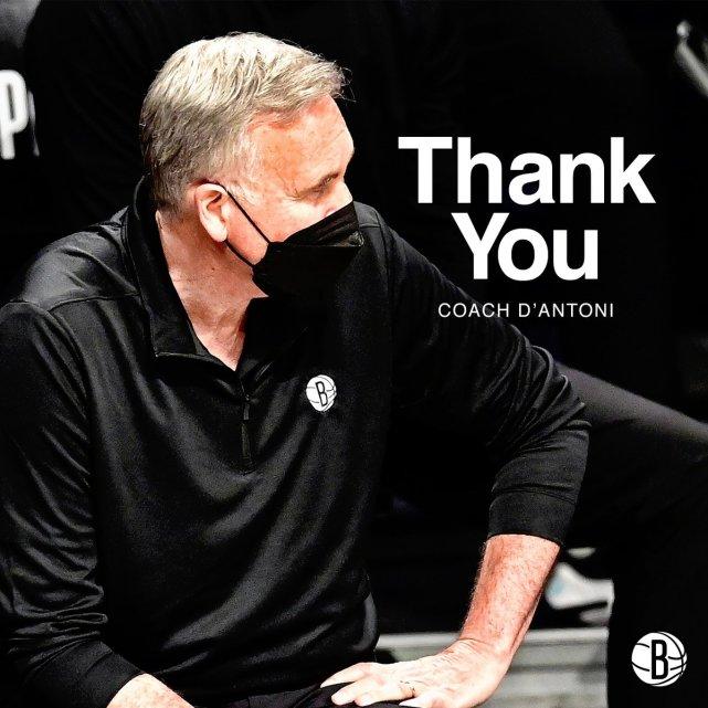 另外,篮网官方宣布,德安东尼已经决定不再担任球队的助理教练。据悉,德安东尼会寻找一份主教练的工作。纳什在官方声明里对德帅表示感谢:“我要感谢迈克(德安东尼)过去一年对我以及这支球队带来的所有帮助。在我担任主教练的第一年,能有他在身边是极其宝贵的,我会永远对他的指导心怀感恩,球员们也获益良多。我们祝福迈克一家未来一切都好。”