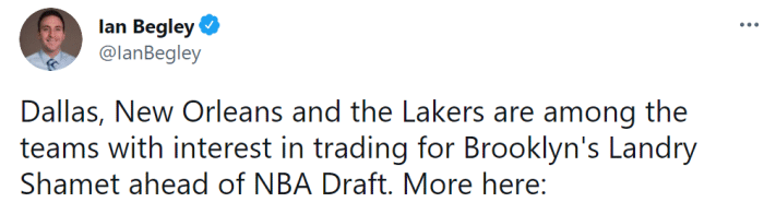 Ian Begley还报道称,篮网有意送走沙梅特,而独行侠、鹈鹕和湖人对这位射手有兴趣。2020-21赛季,沙梅特场均9.3分1.8篮板1.6助攻,三分命中率38.7%。职业生涯至今,沙梅特三分命中率达到39.7%。