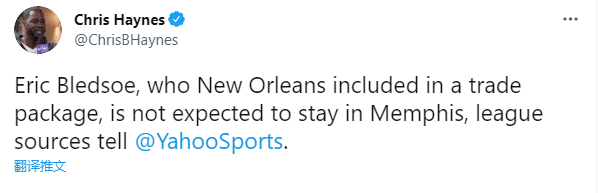 之后名记海耶斯报道,预计布莱德索不会留在孟菲斯灰熊。