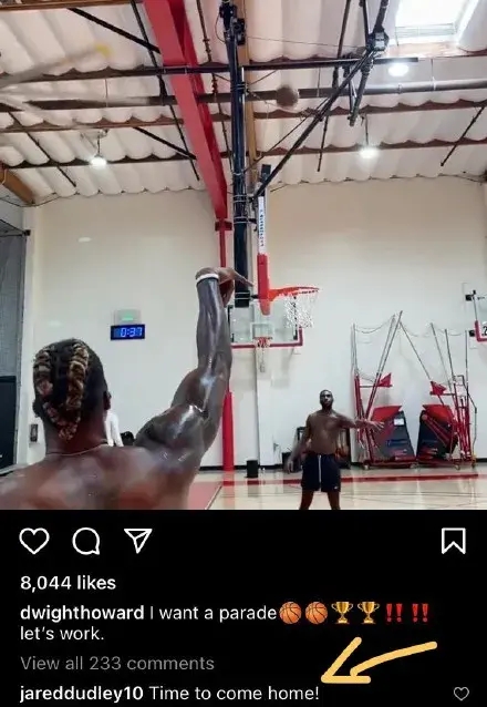 然后湖人保安团队长杜德利在下方评论道:“是时候回家了。”