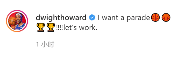 他还配文写道:“我想要一次夺冠游行,让我们投入训练吧!”霍华德曾在2020年跟随湖人夺冠,那也是他个人的第一座NBA总冠军。