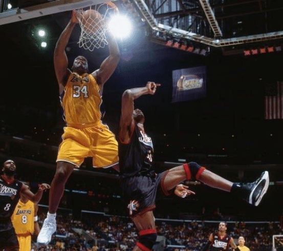 巅峰的奥尼尔有多强?后乔丹时期唯一一个带队获得三连冠,并连续获得3个FMVP的球员。当年奥尼尔只要拿到篮球,无论禁区里有几个防守者。奥尼尔都会对禁区施行碾压完成扣篮。他的扣篮雷霆万钧,不可阻挡!唯一能阻止奥尼尔得分的只有“砍鲨”,只要一走上罚球线,将近50%罚球命中率的奥尼尔就会变得温顺许多。但即便有罚球短板的奥尼尔,依旧可以在巅峰时期凭借一己之力击败任何对手,多次获得总冠军!