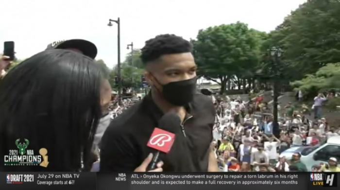 26岁的年纪夺冠了,甚至成为了罕见的“大满贯”球员,拥有最快进步球员,MVP,FMVP和DPOY,今天雄鹿正举行夺冠游行。谈到对于夺冠游行的感受,字母哥说:“这感觉太棒了,我高兴的原因是因为看到球迷们这么开心,他们很享受,他们的家人也很开心,他们在拍照合影留念。感谢球迷的一如既往地支持,我很开心能为这座城市赢得总冠军,我也很高兴他们能和我们一起庆祝。”