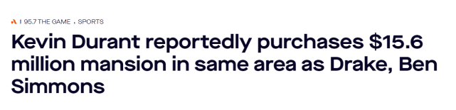 360直播讯 北京时间7月23日,篮网球星凯文-杜兰特在洛杉矶的隐山(Hidden Hills)某社区斥资1560万美元购置了一套豪宅,有趣的是不到一个月前,本-西蒙斯也在同一社区买下一套房产,他花了1750万美元。换言之,杜兰特和西蒙斯成了邻居,美媒调侃:杜兰特可以在休赛期教西蒙斯罚球了。