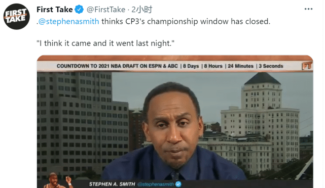 错过这次机会,保罗未来还能向总冠军发起冲击吗?名嘴斯蒂芬A史密斯认为已经没有了!