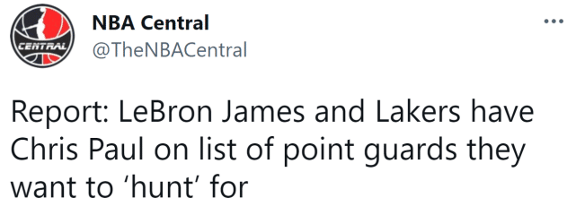 斯皮尔斯也在报道中透露,詹姆斯和湖人在寻找一个经验丰富的后卫,而保罗也在他们有兴趣的名单上。