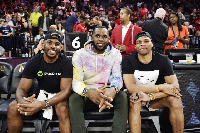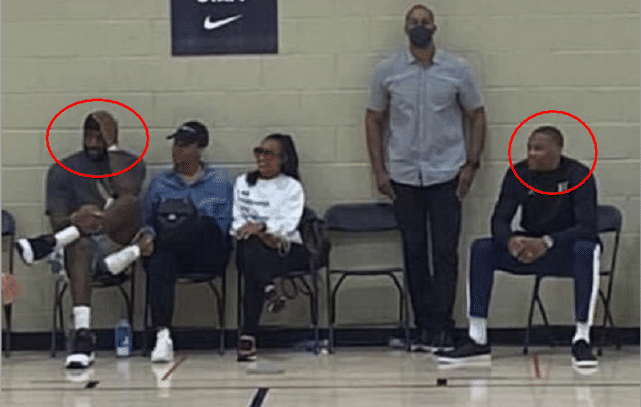 随后,詹姆斯和威少近日碰面的照片曝光,两人一起在场边观看了一场高中篮球比赛,比赛中的一方是威少赞助的球队。两人在比赛中时不时进行交流,这次碰面也引起球迷热议,这是已经开始招募了吗?